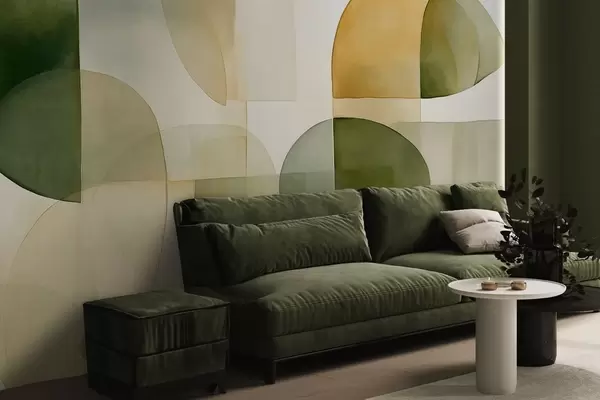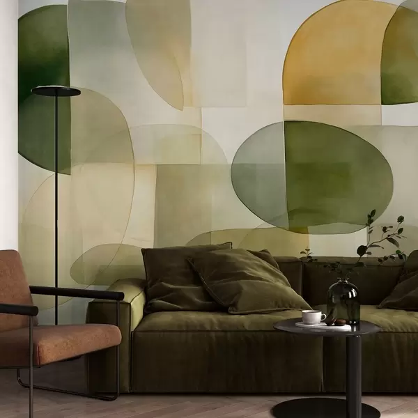 Fototapety Abstraktné textúrované tvary v odtieňoch zelenej a žltej, tlmené tóny, minimalistická kompozícia, neutrálne pozadie Nr. w09467
