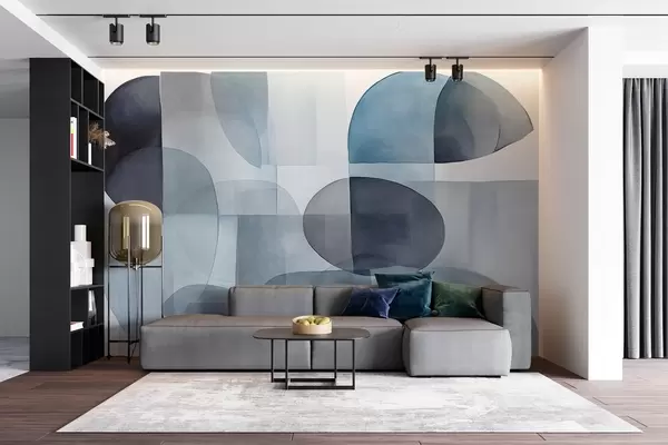 Fototapety Abstraktné textúrované tvary v odtieňoch šedej a modrej, tlmené tóny, minimalistická kompozícia, neutrálne pozadie Nr. w09467v1