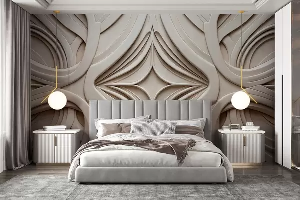 Fototapety Abstraktný symetrický textúrovaný geometrický potlač, svetlo béžová farba, štýl art deco, zložité detaily Nr. w09473