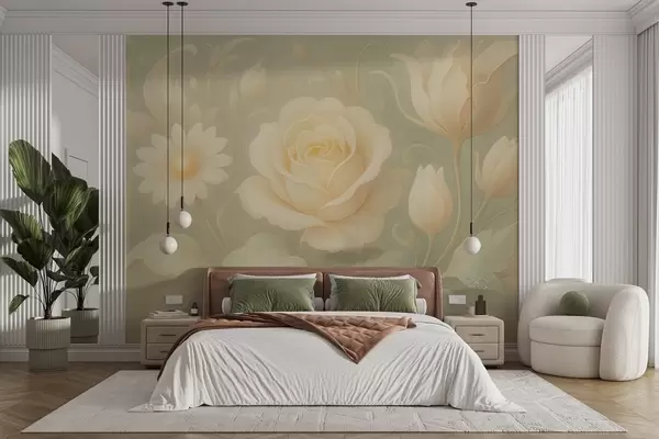 Fototapety Jemná vintage kompozícia s béžovými ružami na svetlozelenom pozadí Nr. w09499