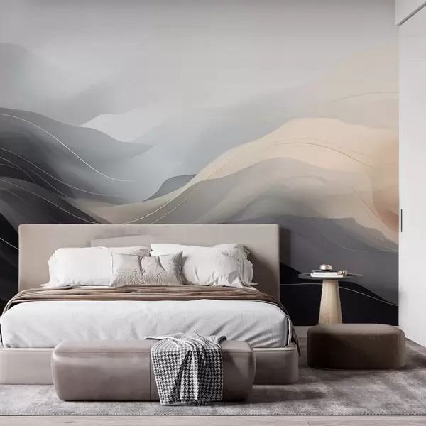 Fototapety Abstraktné hmlisté vlny v šedo-krémových odtieňoch so žltými čiarami Nr. w09504