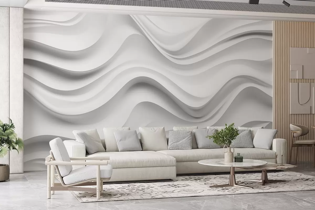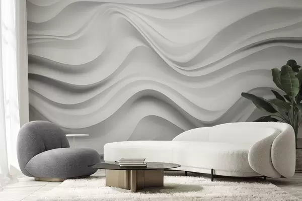 Fototapety Čiernobiela abstraktná 3D kompozícia s hladkými vlnami Nr. w09506