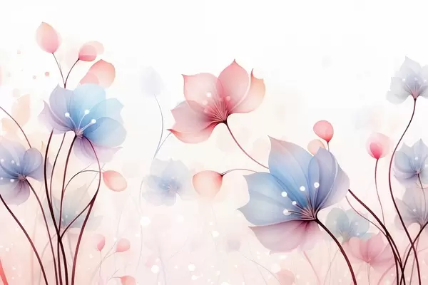 Fototapety Jemné ružovo-modré kvety — vzdušná flóra na bielom akvarelovom pozadí Nr. w09507