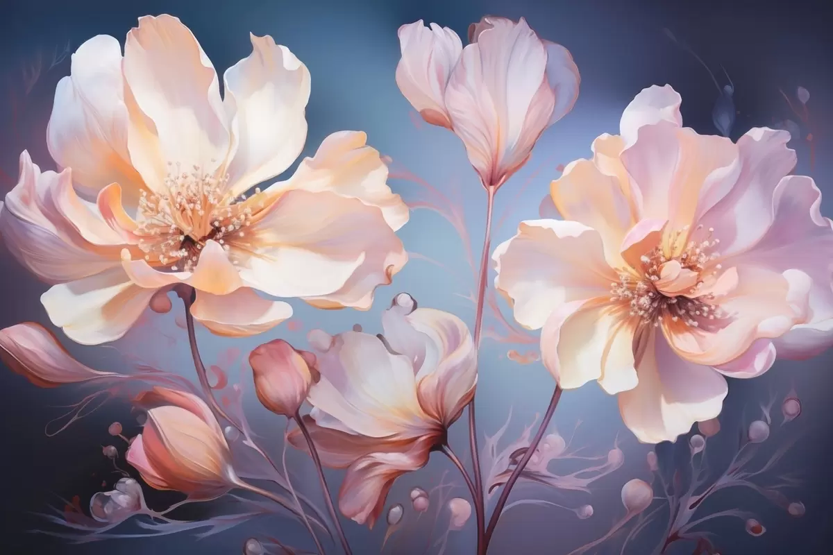 Fototapety Vzdušné ružovo-krémové pivonky v akvarelovom štýle na tmavomodrom pozadí Nr. w09513