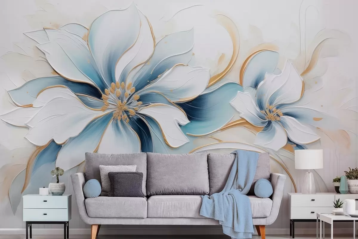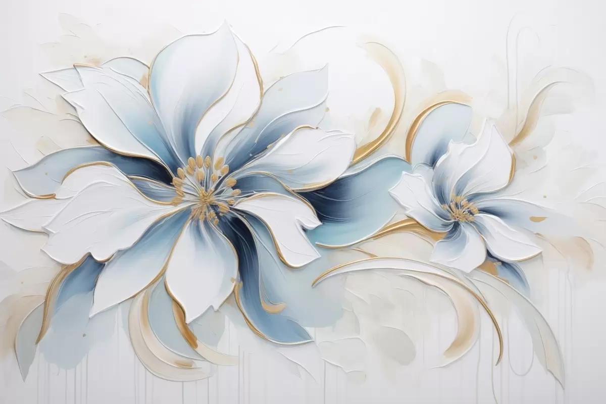 Fototapety Maliarska abstrakcia s modrými kvetmi v štýle olejomaľby Nr. w09524