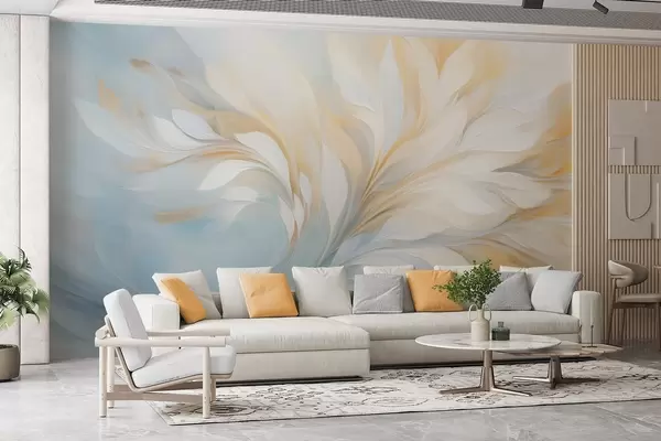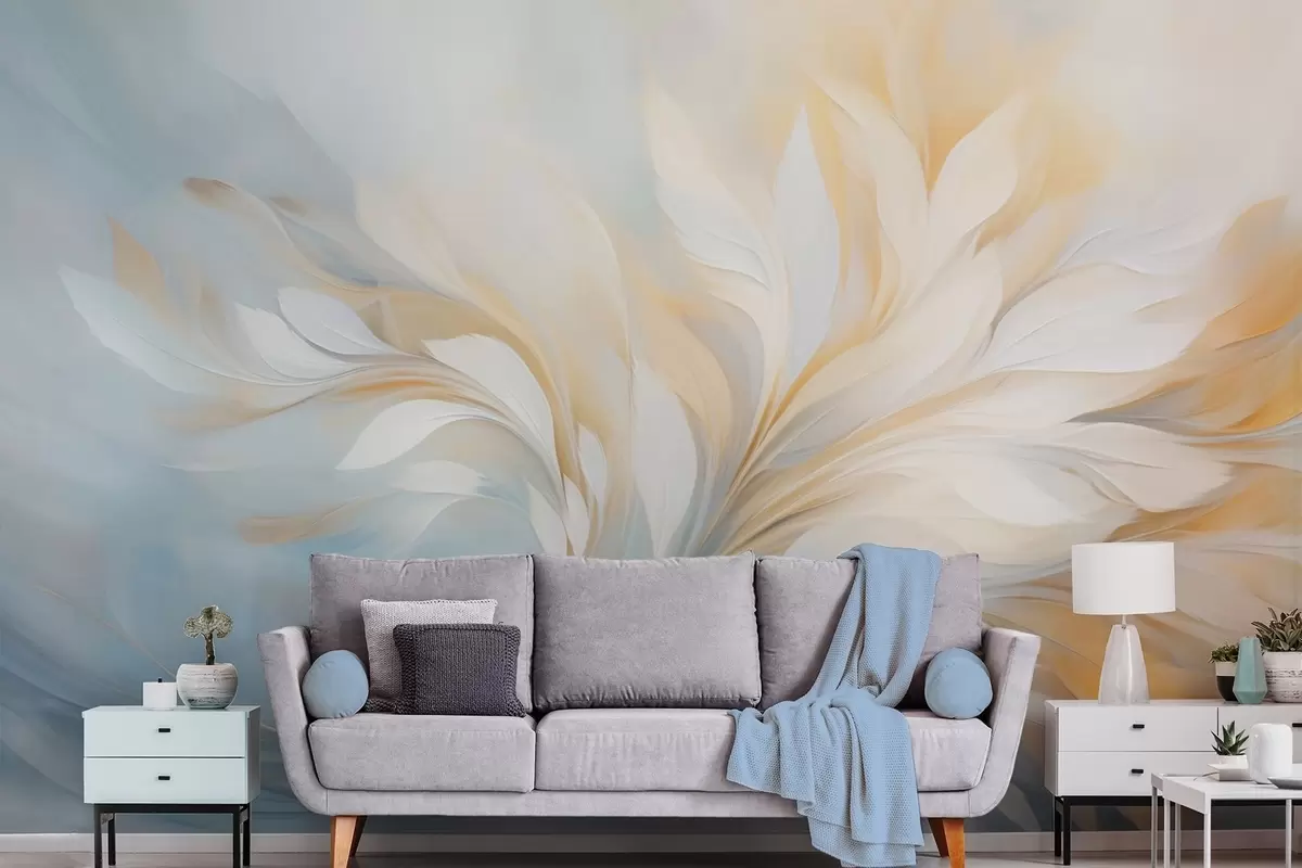 Fototapety Abstraktná kompozícia hladkých pierkovitých tvarov v žltých a modrých odtieňoch Nr. w09525