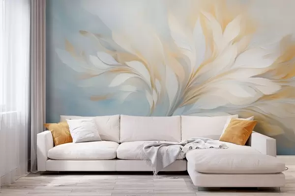 Fototapety Abstraktná kompozícia hladkých pierkovitých tvarov v žltých a modrých odtieňoch Nr. w09525