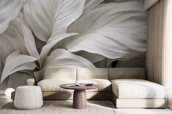 Fototapety Veľké, textúrované biele listy s výraznými žilami, ktoré sa prekrývajú a vytvárajú hĺbku Nr. w09536