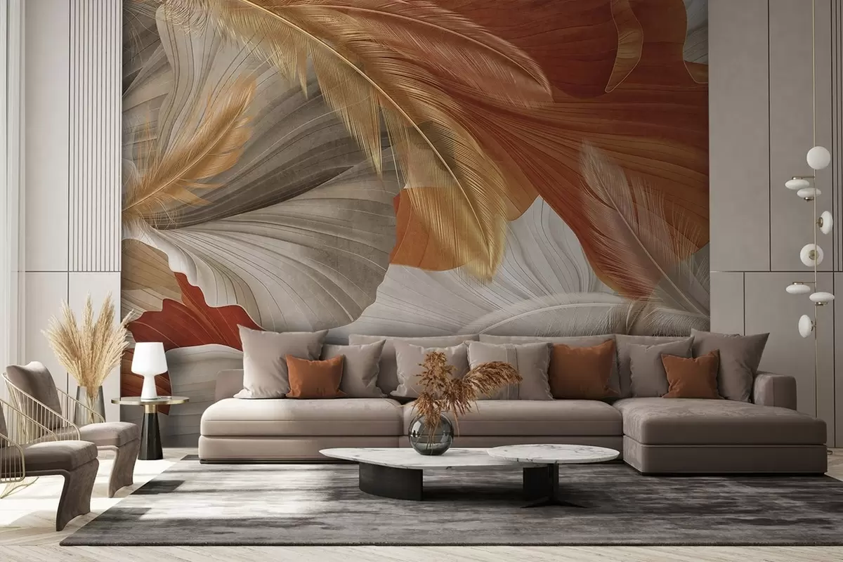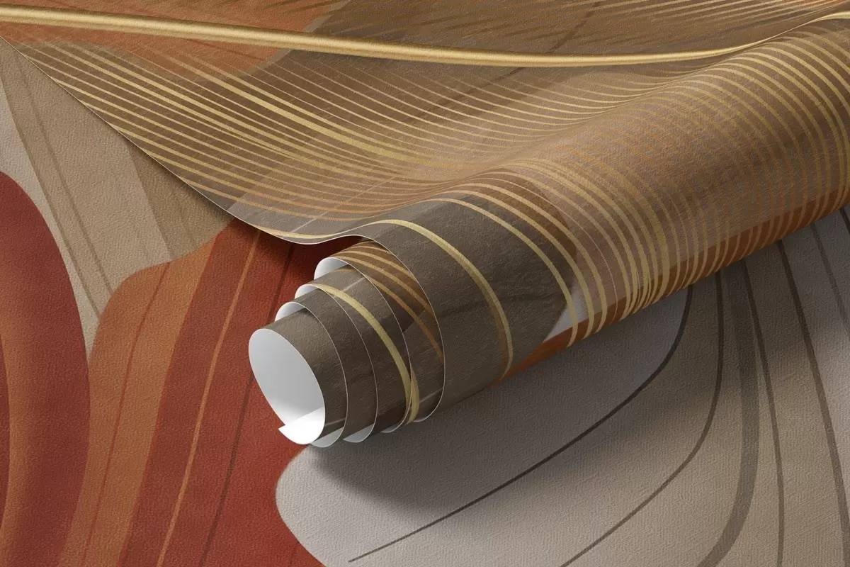 Fototapety Abstraktné textúrované veľké plynulé tvary v krémovej a hrdzavej farbe s jemnými žltými, béžovými a hnedými pierkami Nr. w09549
