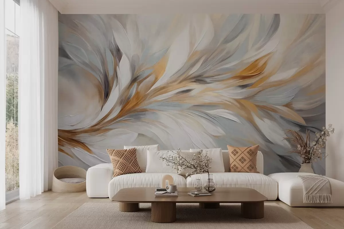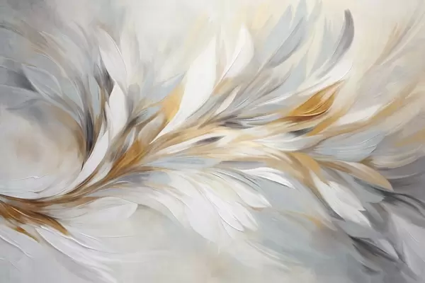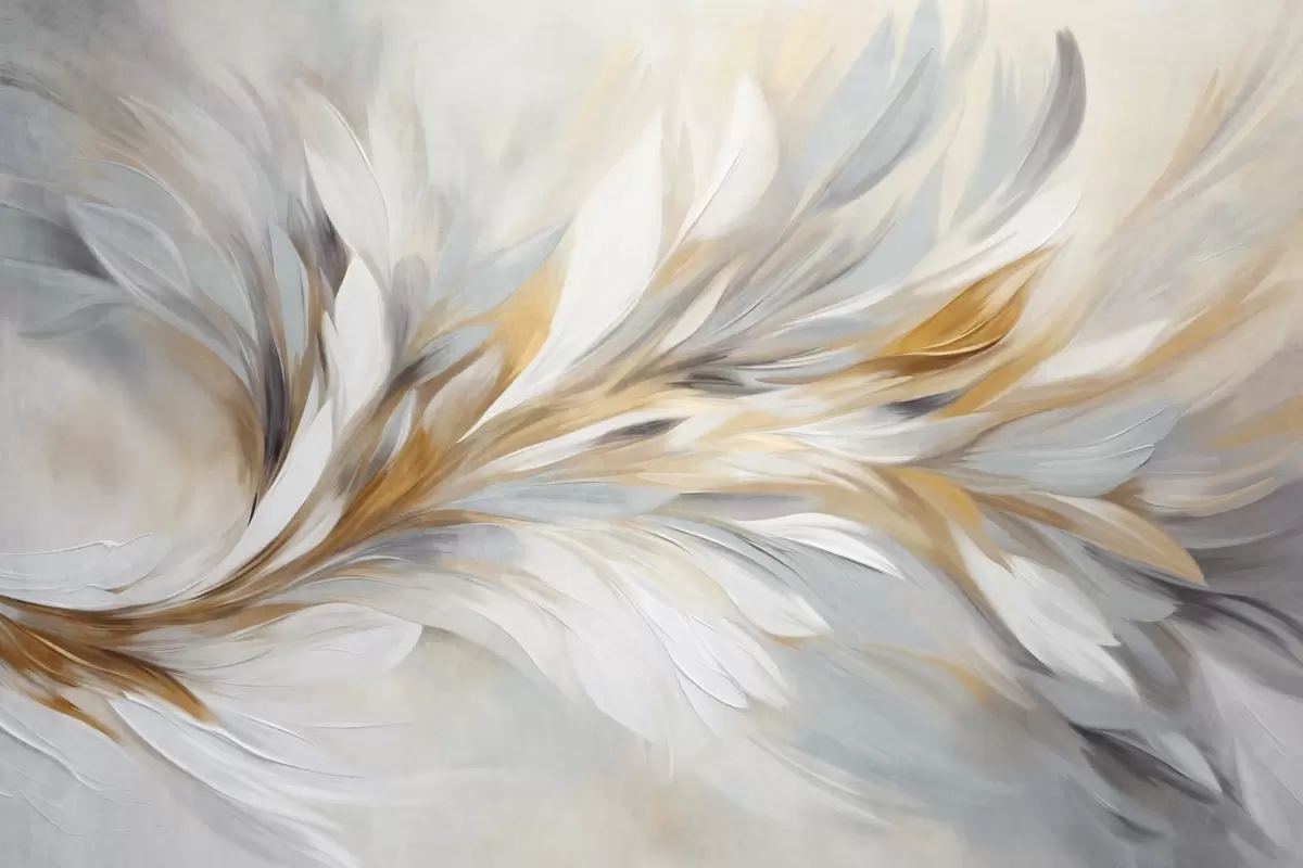 Fototapety Abstraktný maliarsky štýl s bielymi, žltými a sivými štruktúrovanými ťahmi štetcom na jemnom, svetlom pozadí Nr. w09552