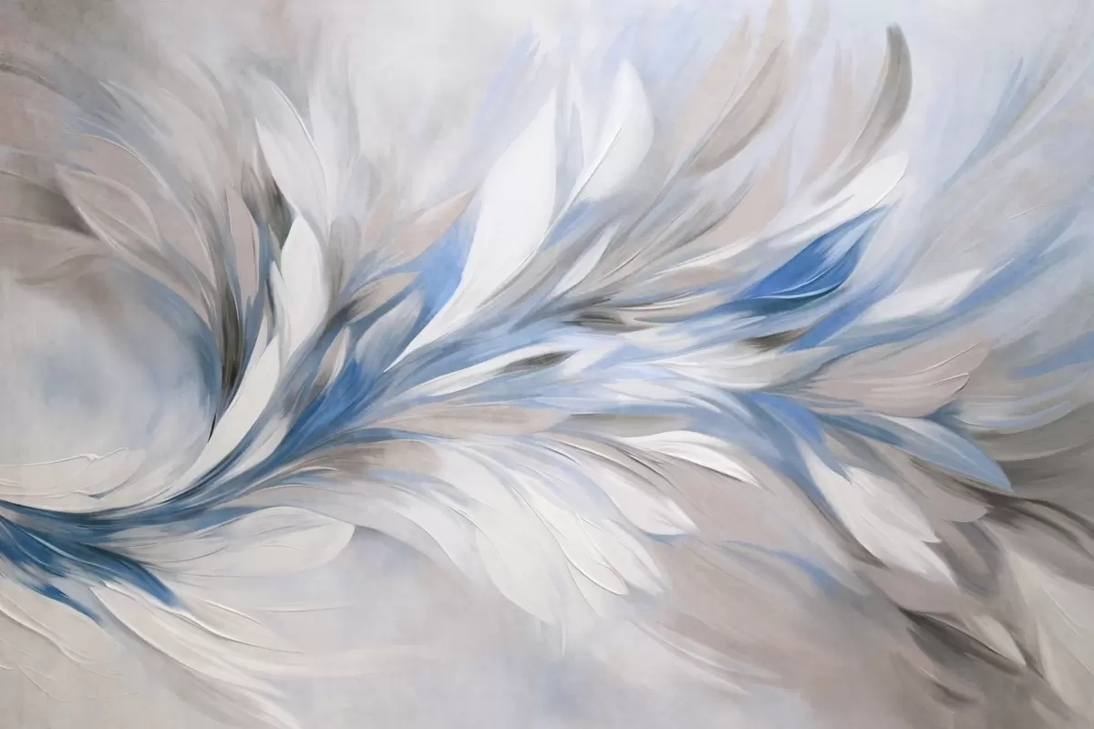 Fototapety Abstraktný maliarsky štýl s bielymi, modrými a sivými štruktúrovanými ťahmi štetcom na jemnom, svetlom pozadí Nr. w09552v1