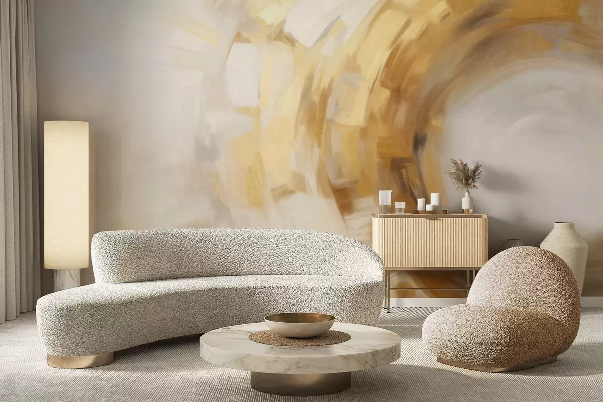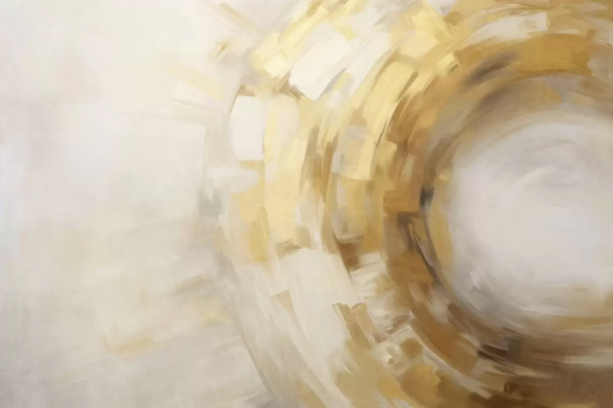Fototapety Imitácia abstraktnej maľby s kruhovými štruktúrovanými ťahmi štetcom v žltej a bielej farbe, vytvárajúca dojem pohybu. Nr. w09558
