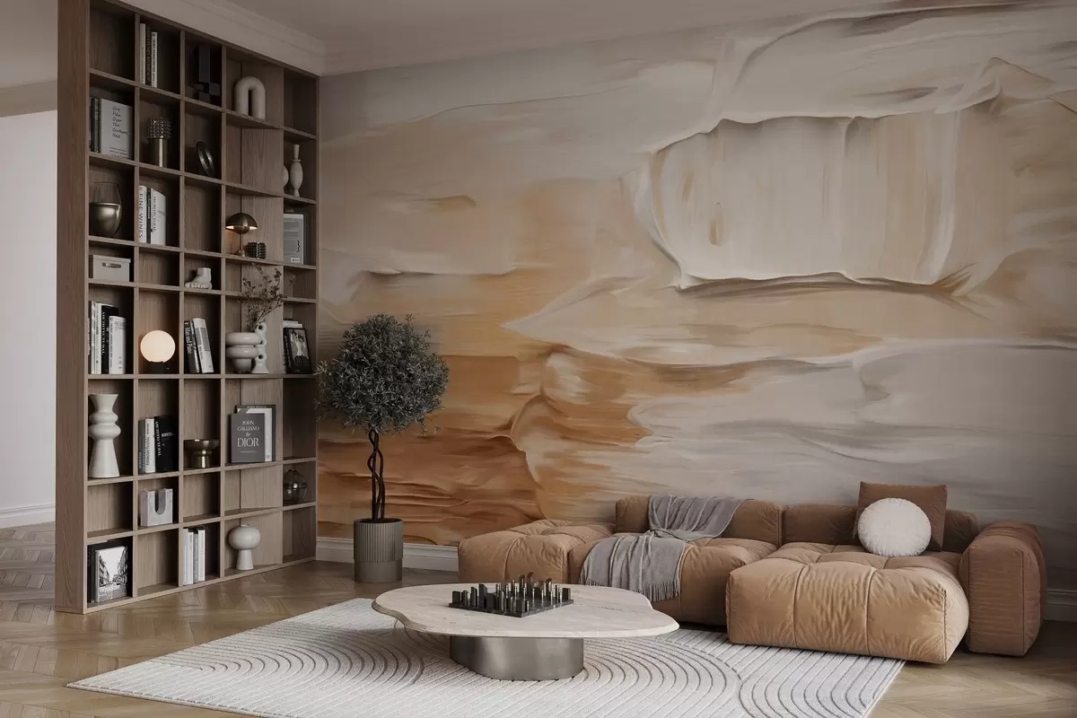 Fototapety Abstraktná imitácia štetcom nanesených ťahov v teplých zemitých odtieňoch béžovej, smotanovej a hnedej, moderné umenie Nr. w09588