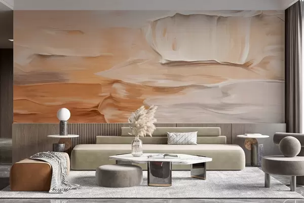 Fototapety Abstraktná imitácia štetcom nanesených ťahov v teplých zemitých odtieňoch béžovej, smotanovej a hnedej, moderné umenie Nr. w09588