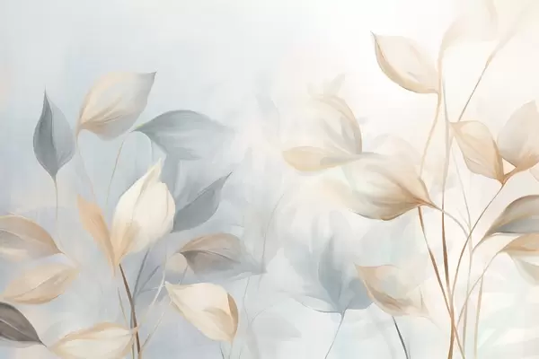 Fototapety Jemné, delikátne, priesvitné listy v tlmených odtieňoch béžovej, broskyňovej a bledomodrej, textúrované pastelové umenie Nr. w09607