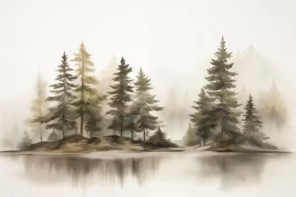 Fototapety Textúrovaný hmlistý les s vysokými borovicami, maľba imitácia Nr. w09610