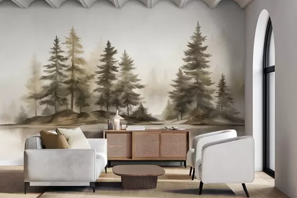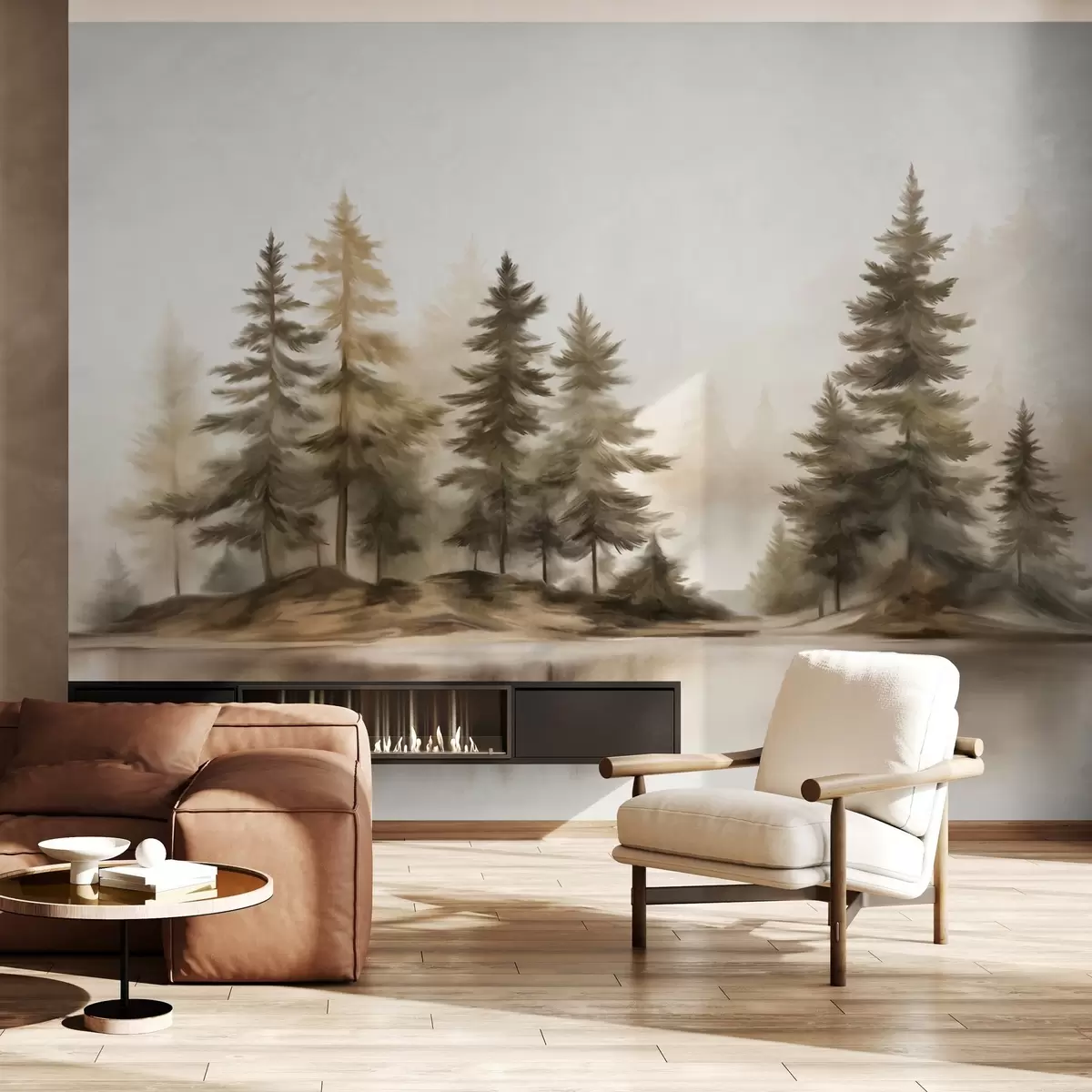 Fototapety Textúrovaný hmlistý les s vysokými borovicami, maľba imitácia Nr. w09610