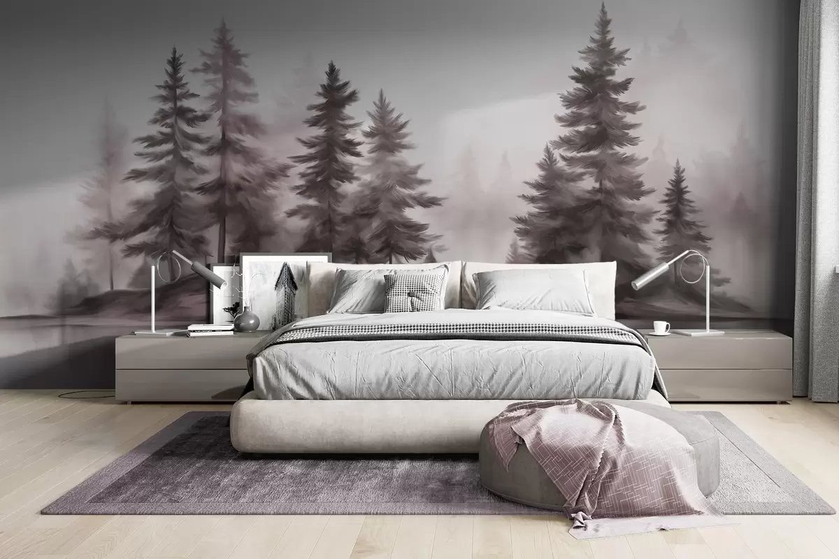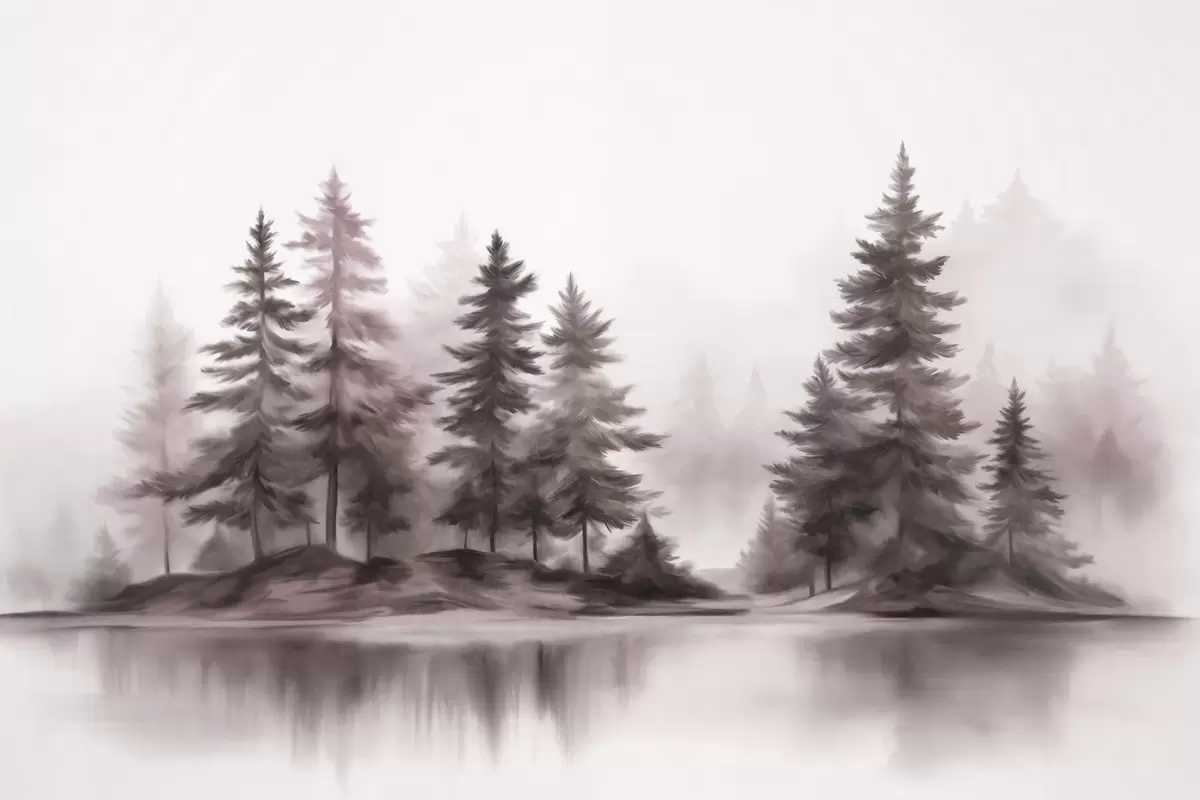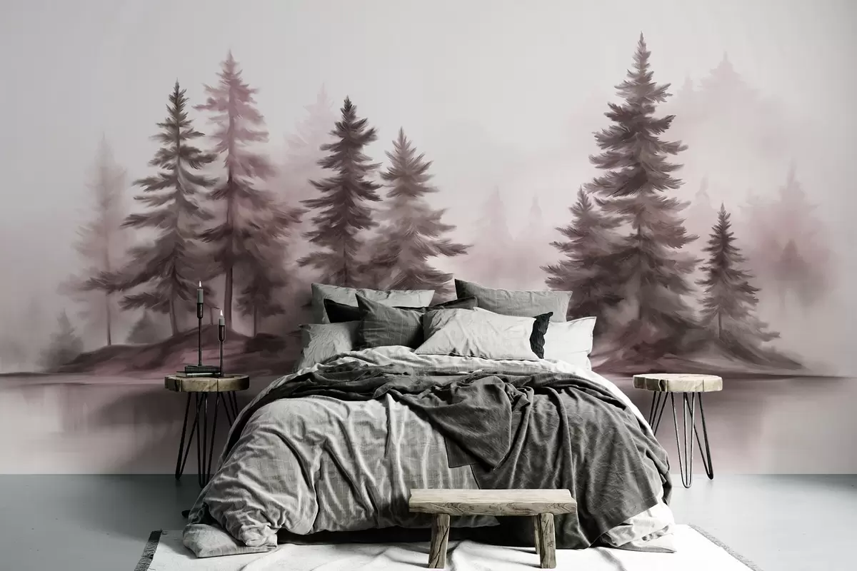 Fototapety Textúrovaný hmlistý les s vysokými borovicami, maľba imitácia Nr. w09610v1