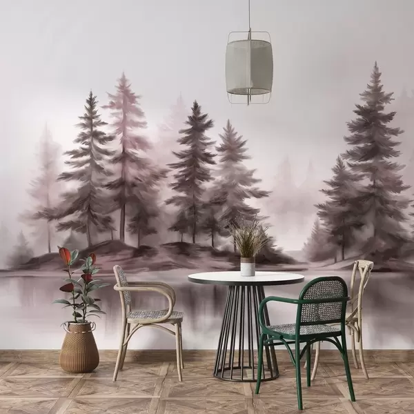 Fototapety Textúrovaný hmlistý les s vysokými borovicami, maľba imitácia Nr. w09610v1