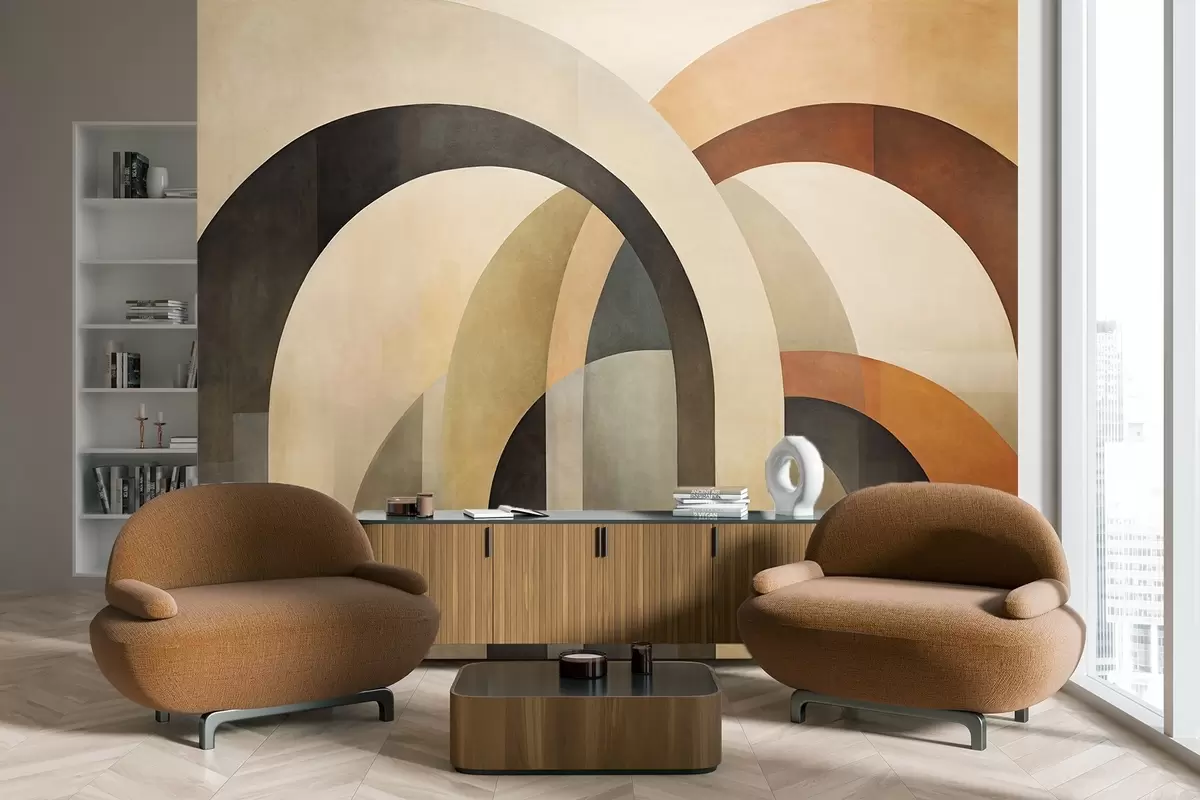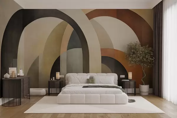 Fototapety Abstraktné textúrované geometrické oblúky v zemitých odtieňoch béžovej, hnedej a sivej, vrstvený moderný architektonický dizajn Nr. w09611