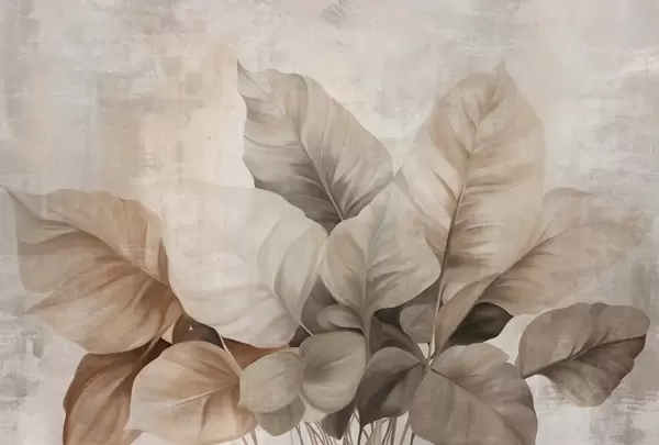 Fototapety Textúrovaná maľba imitujúca veľké, svetlohnedé listy na neutrálnom pozadí s jemnými ťahmi štetcom. Nr. w09614