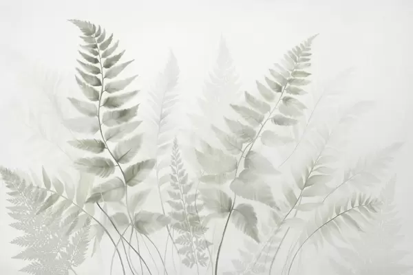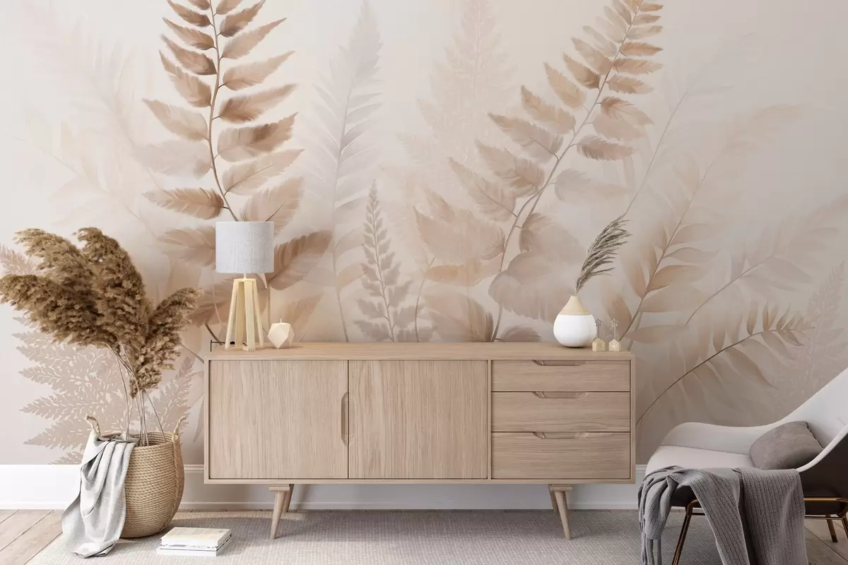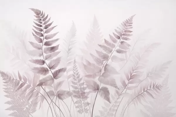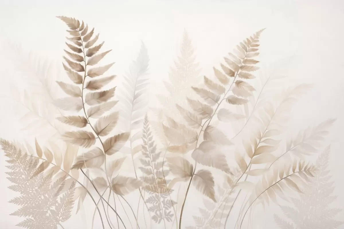 Fototapety Textúrované sušené listy paprade v rôznych odtieňoch hnedej farby s jemným, svetlým pozadím v akvarelovom štýle. Nr. w09615