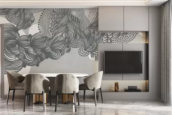 Fototapety Abstraktný textúrovaný dizajn na sivom pozadí so zložitými líniami a bodkovanými textúrami Nr. w09621v1
