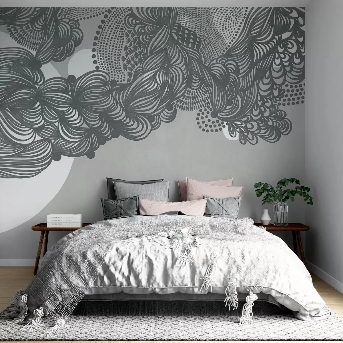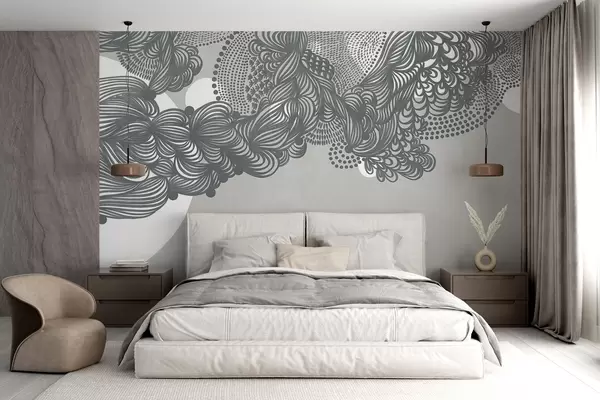 Fototapety Abstraktný textúrovaný dizajn na sivom pozadí so zložitými líniami a bodkovanými textúrami w09621v1