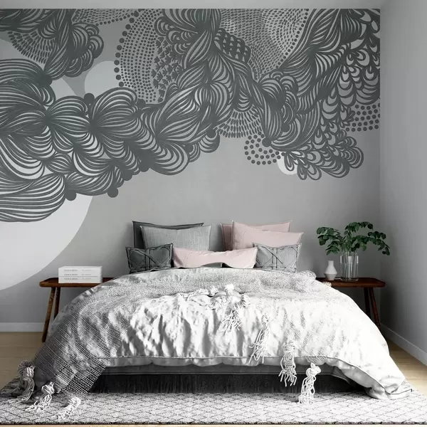 Fototapety Abstraktný textúrovaný dizajn na sivom pozadí so zložitými líniami a bodkovanými textúrami Nr. w09621v1