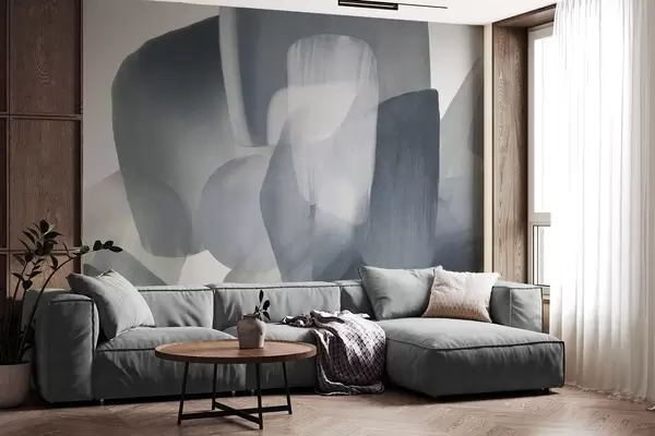 Fototapety Abstraktné textúrované tvary v tlmených modrých a sivých farbách, s mäkkými okrajmi a prekrývajúcimi sa vrstvami Nr. w09642v1