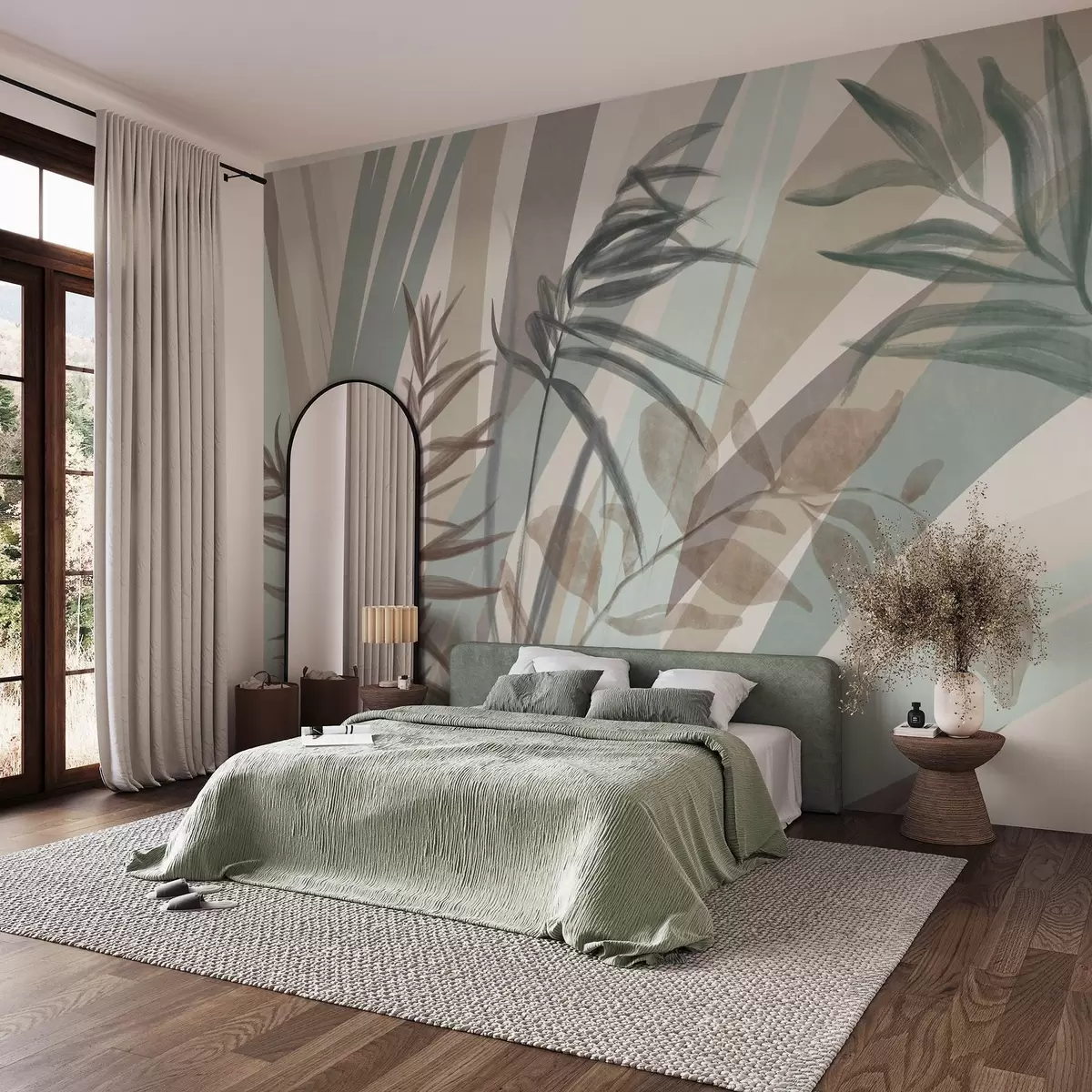Fototapety Vysoká textúrovaná tráva a listy v tlmených zemitých odtieňoch s abstraktnými líniami v pozadí vytvárajú organický vzor. Nr. w09643
