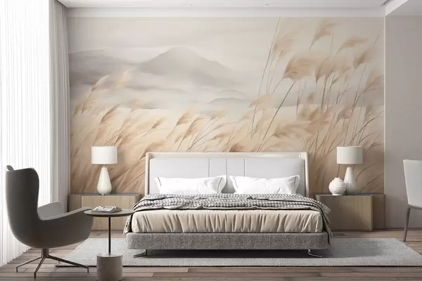 Fototapety Textúrovaná horská krajina s vysokou suchou trávou pod zamračenou oblohou Nr. w09649