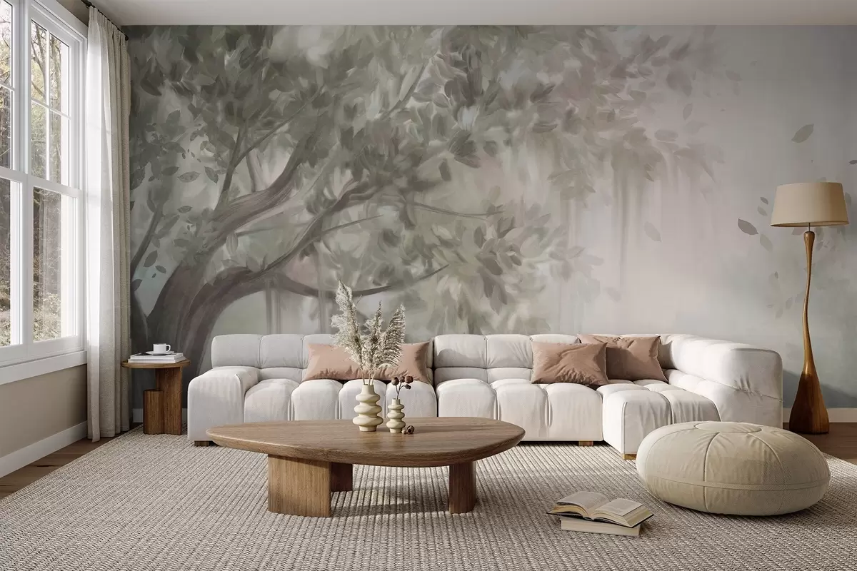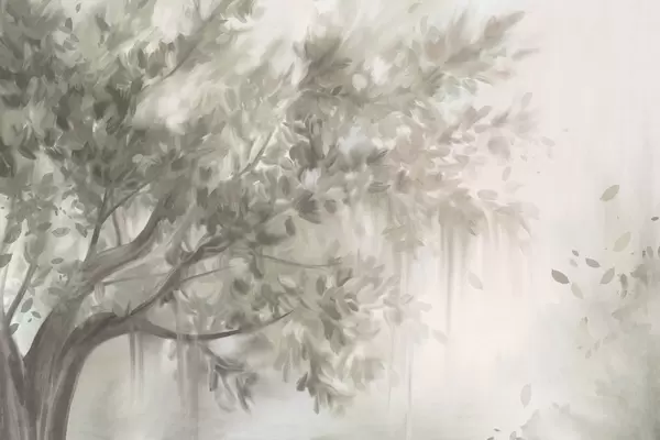 Fototapety Textúrovaný strom so svetlozelenými listami a vetvami, s jemným, zamatovým pozadím Nr. w09650