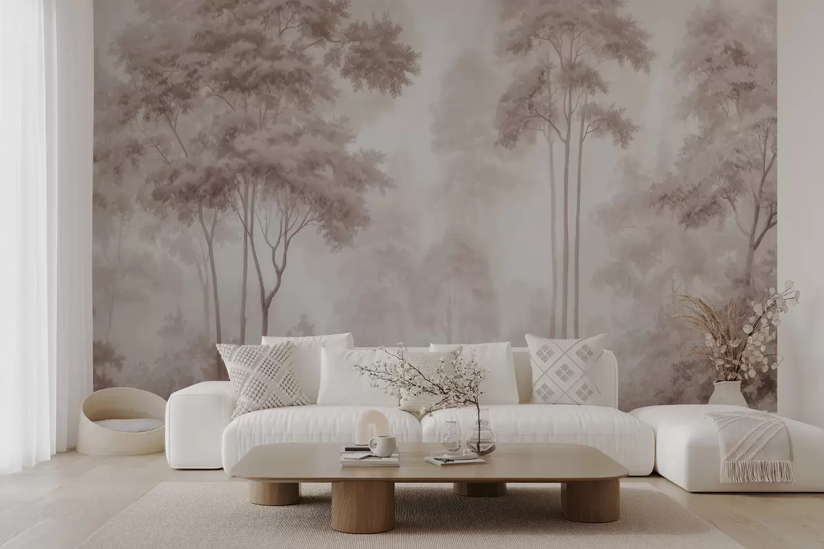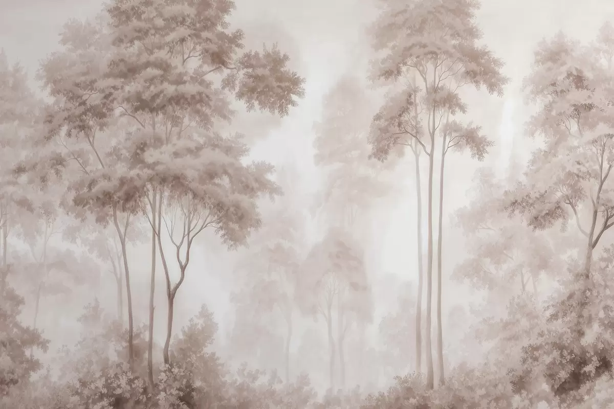 Fototapety Abstraktná lesná krajina v dymových béžových odtieňoch s pocitom hĺbky Nr. w09657