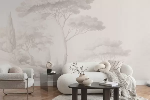 Fototapety Pokojná lesná krajina v béžovej farebnej palete Nr. w09685