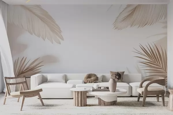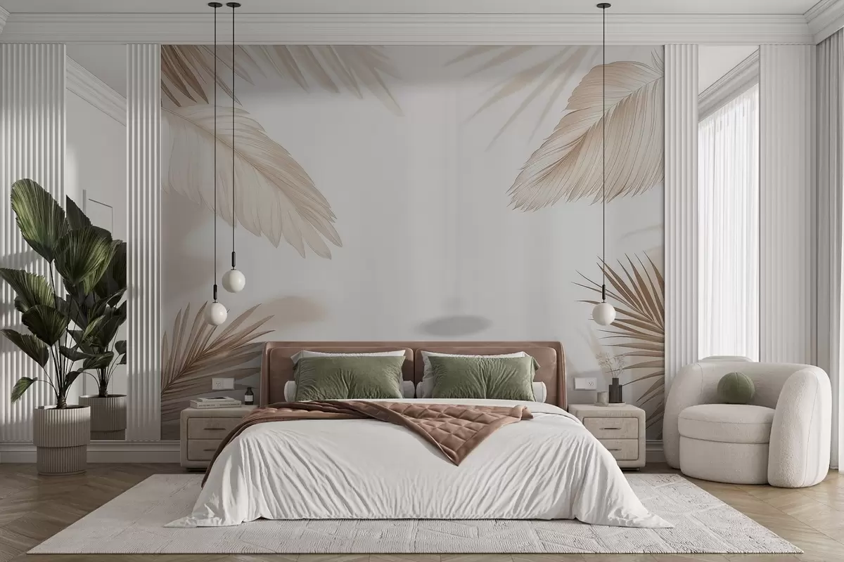 Fototapety Béžová tropická výzdoba so siluetami palmových listov a jemnými tieňmi Nr. w09714
