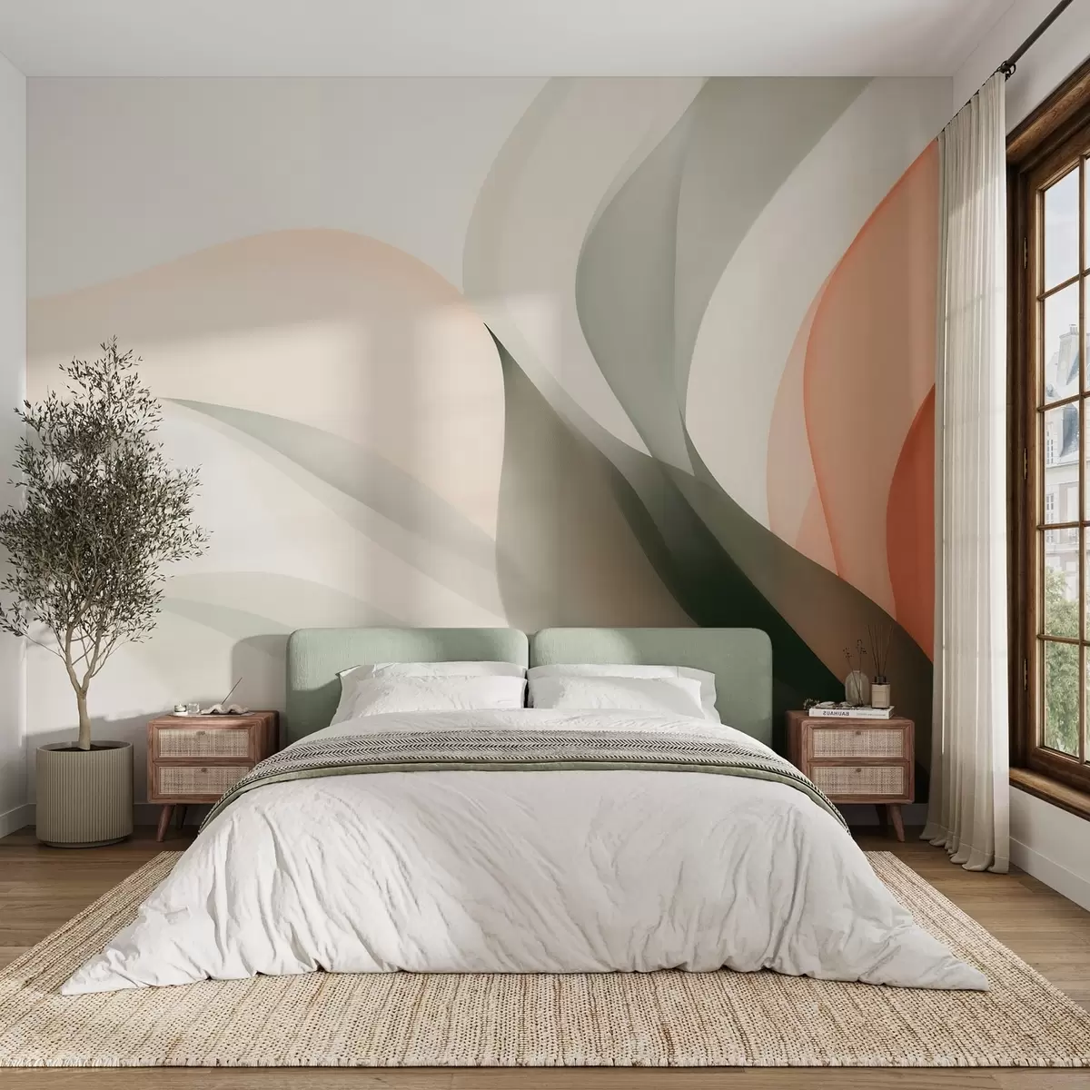 Fototapety Abstraktné pastelové vlny v oranžových a zelených odtieňoch Nr. w09718