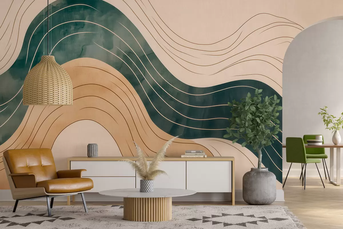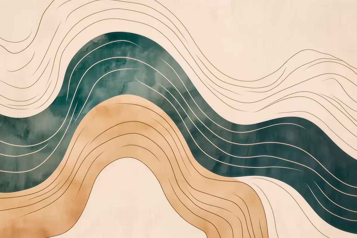 Fototapety Abstraktné vlnovky v prírodných pieskových a smaragdových odtieňoch Nr. w09732