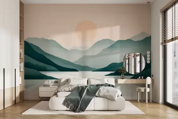 Fototapety Pokojná horská krajina so slnkom nad jazerom Nr. w09735