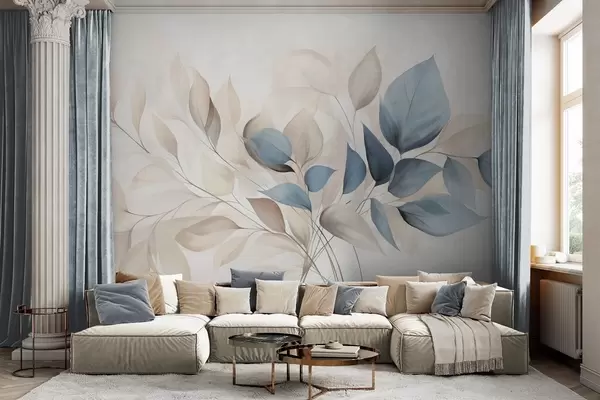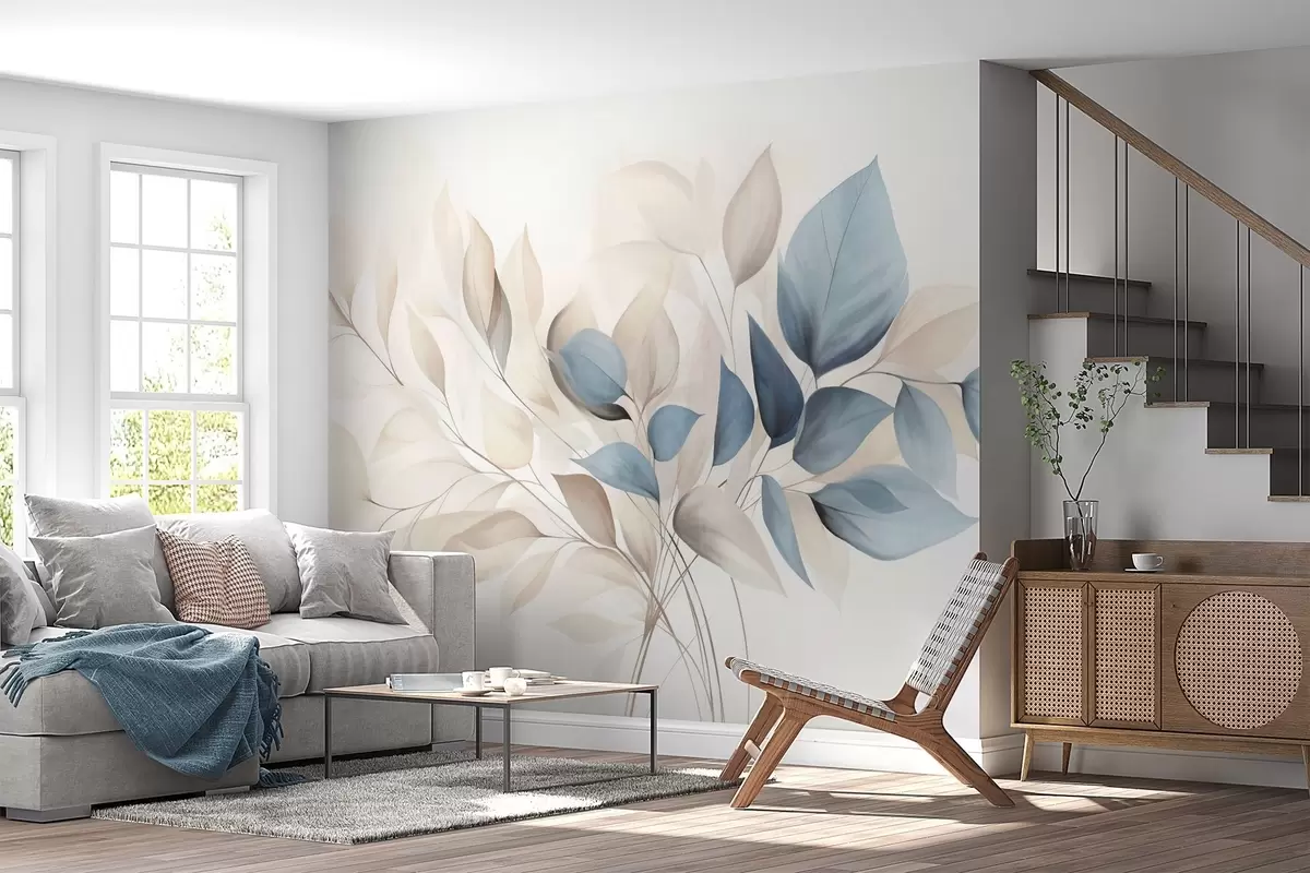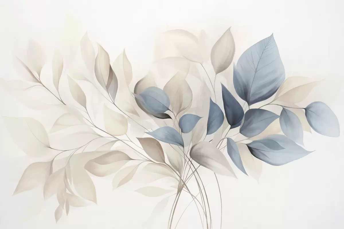 Fototapety Abstraktné priehľadné listy v odtieňoch modrej, béžovej a smotanovej farby, textúrované umenie Nr. w09744