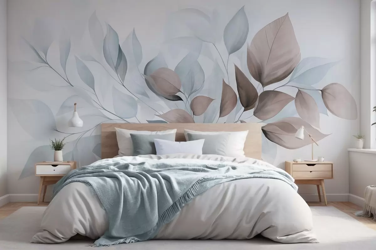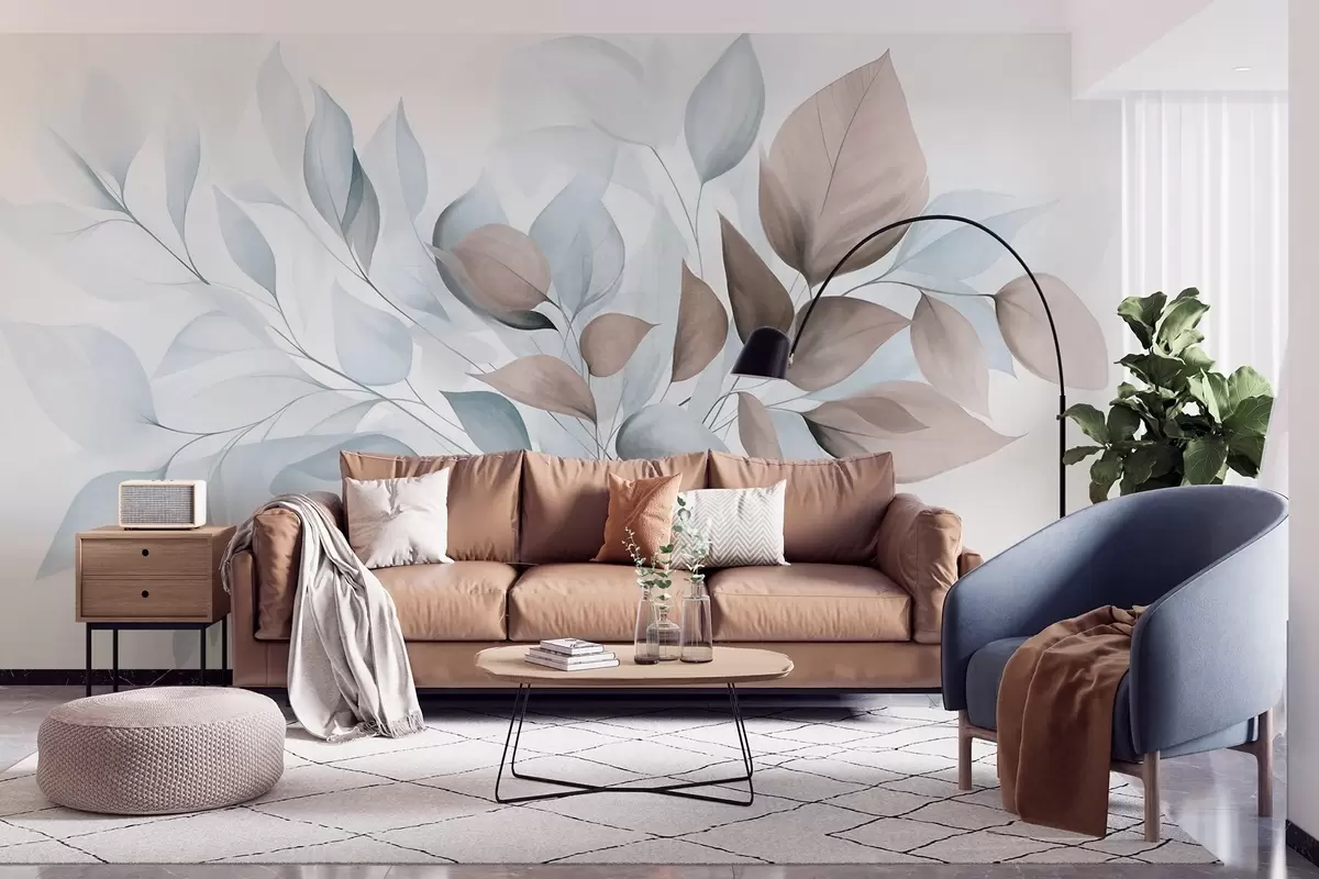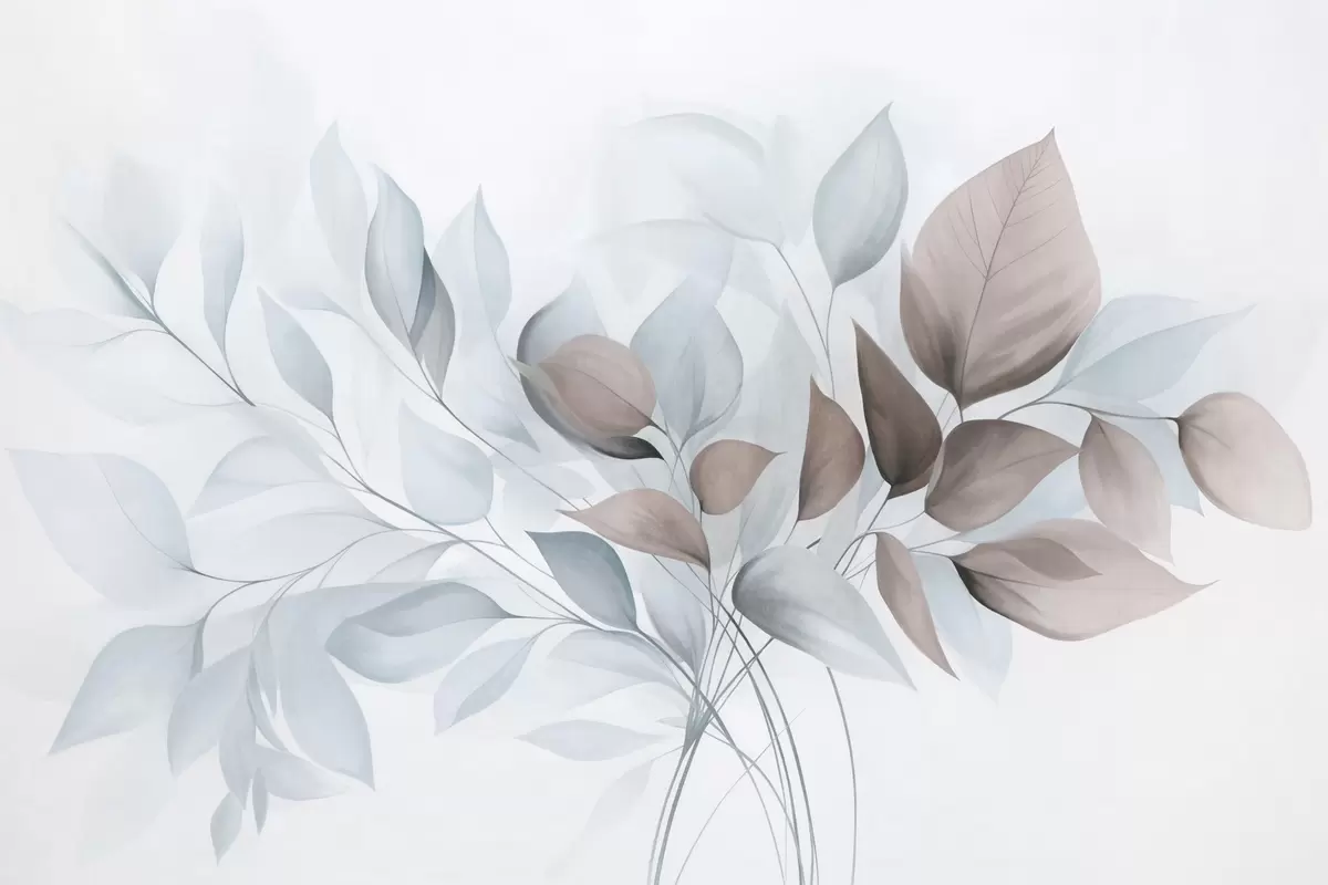 Fototapety Abstraktné priehľadné listy v odtieňoch modrej, béžovej a hnedej, textúrované umenie Nr. w09744v1