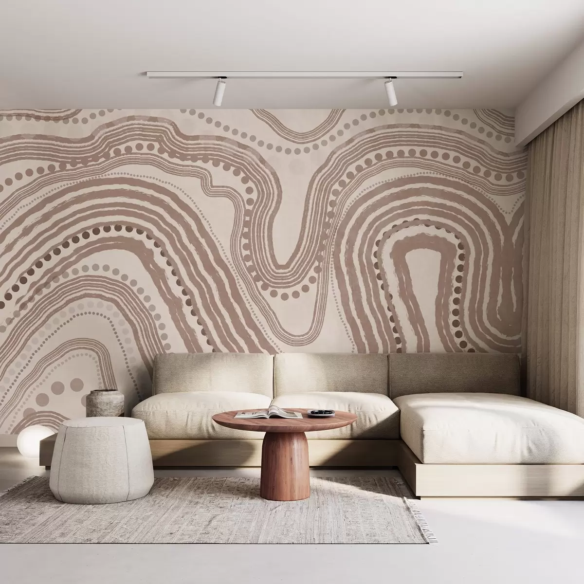 Fototapety Abstraktné hnedé a béžové vlnovky a bodky, moderné textúrované umenie Nr. w09747v1