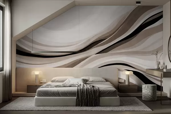 Fototapety Abstraktné vlnovky v odtieňoch béžovej a čiernej na svetlom pozadí, textúrované umenie Nr. w09748