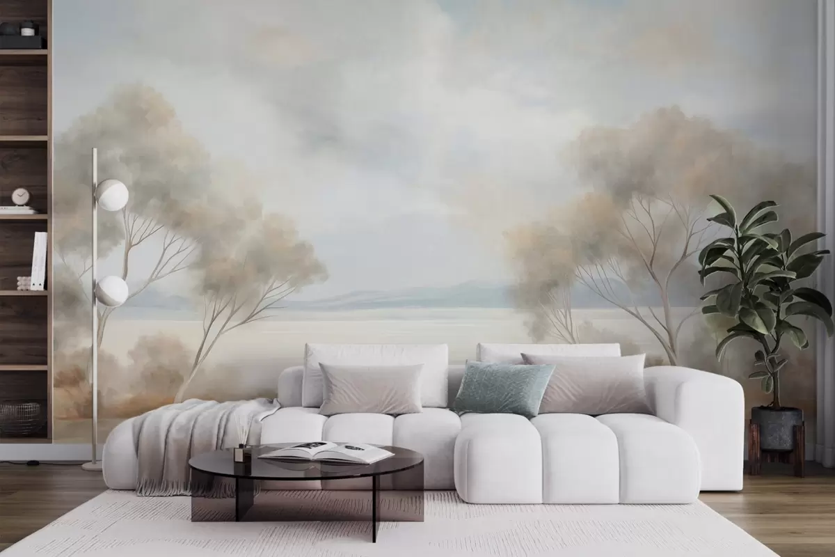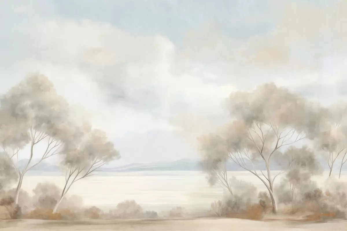 Fototapety Krajinársky štýl maľby s textúrou, so stromami pod zamračenou oblohou Nr. w09753