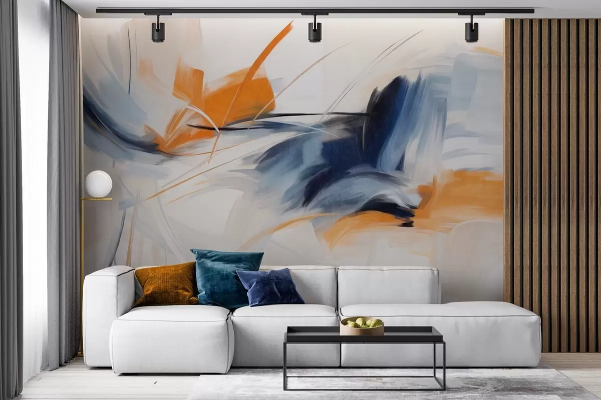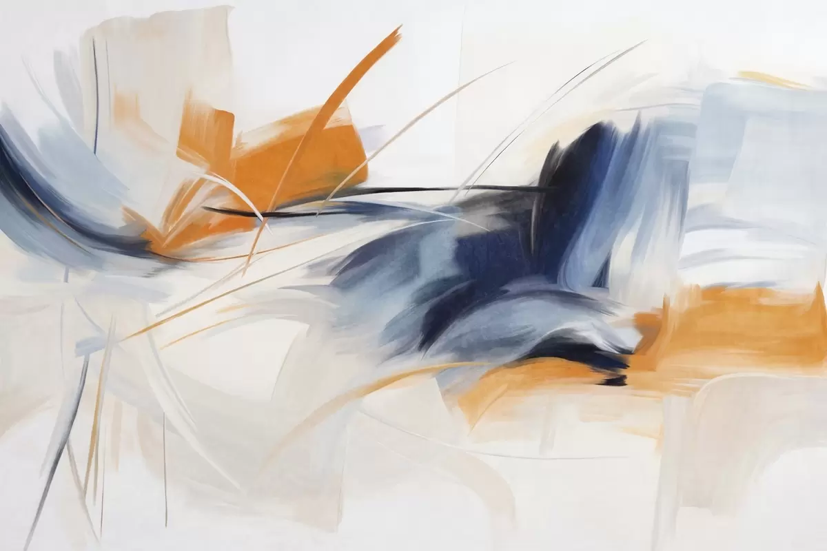 Fototapety Abstraktný maliarsky štýl s oranžovými a modrými štruktúrovanými ťahmi štetcom Nr. w09755