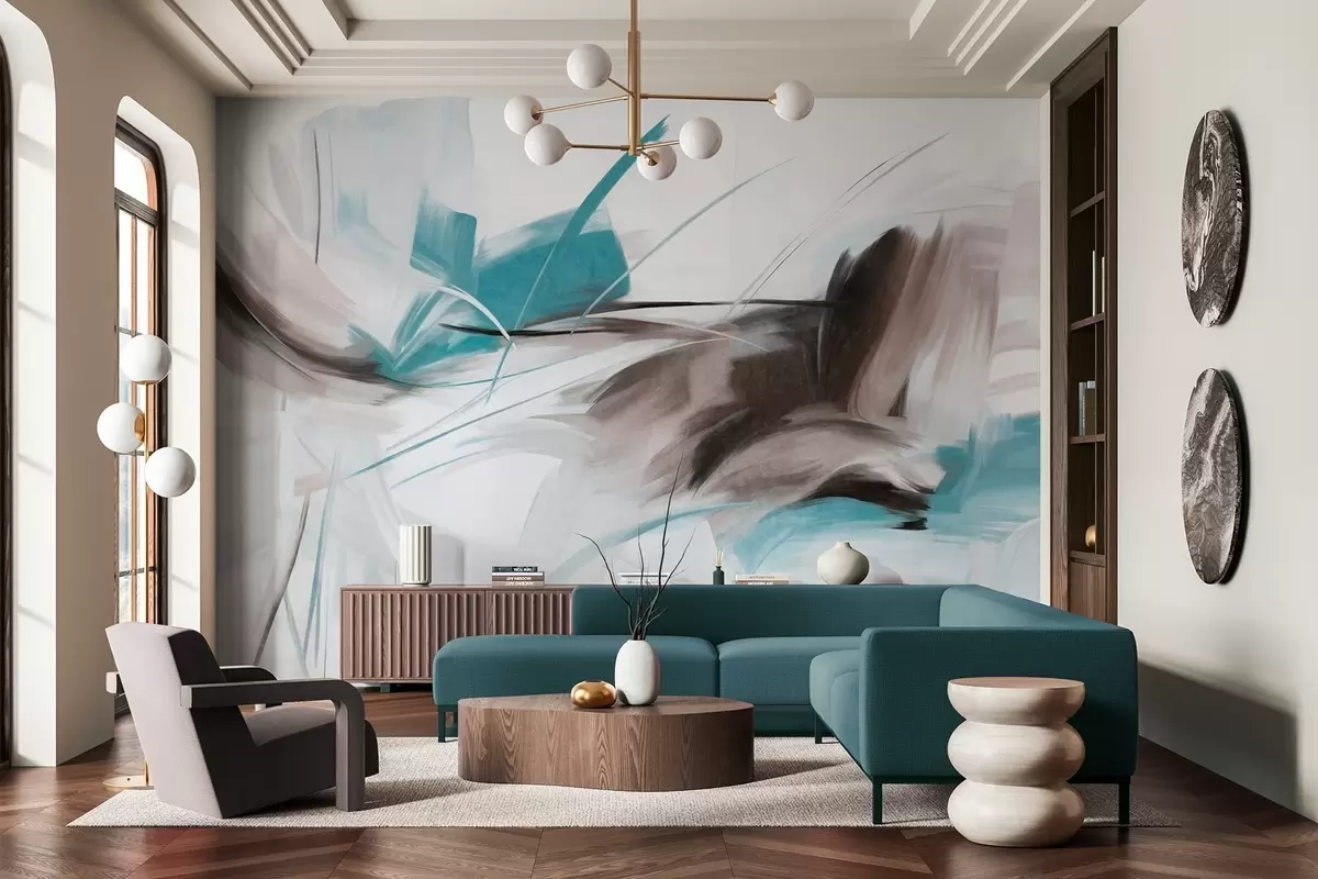 Fototapety Abstraktný maliarsky štýl s hnedými a modrými štruktúrovanými ťahmi štetcom Nr. w09755v1