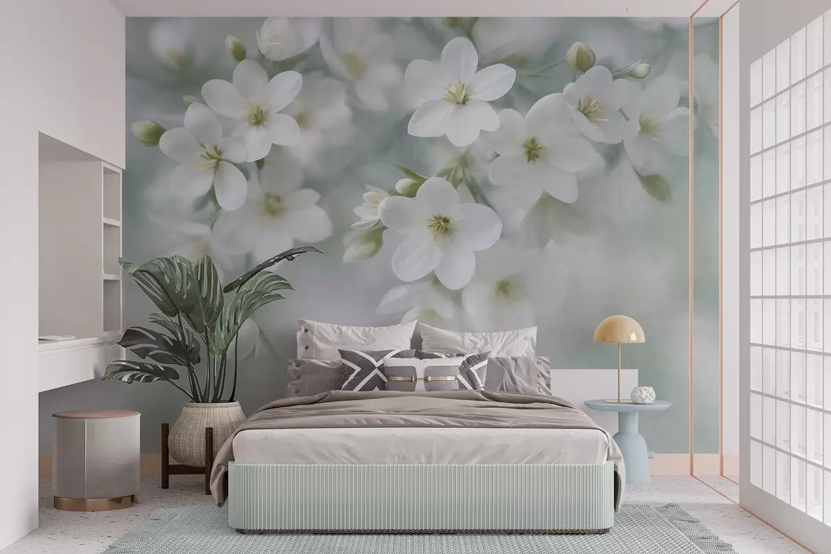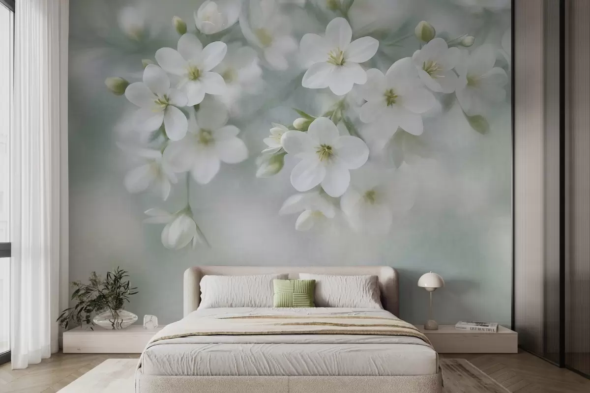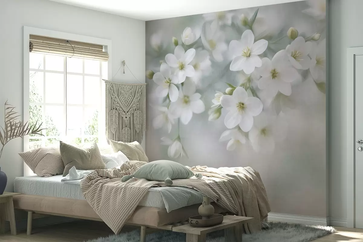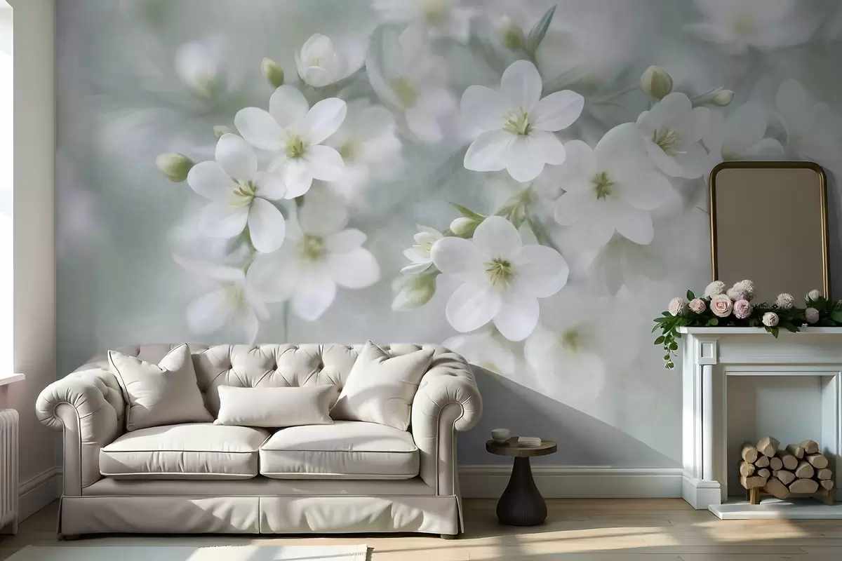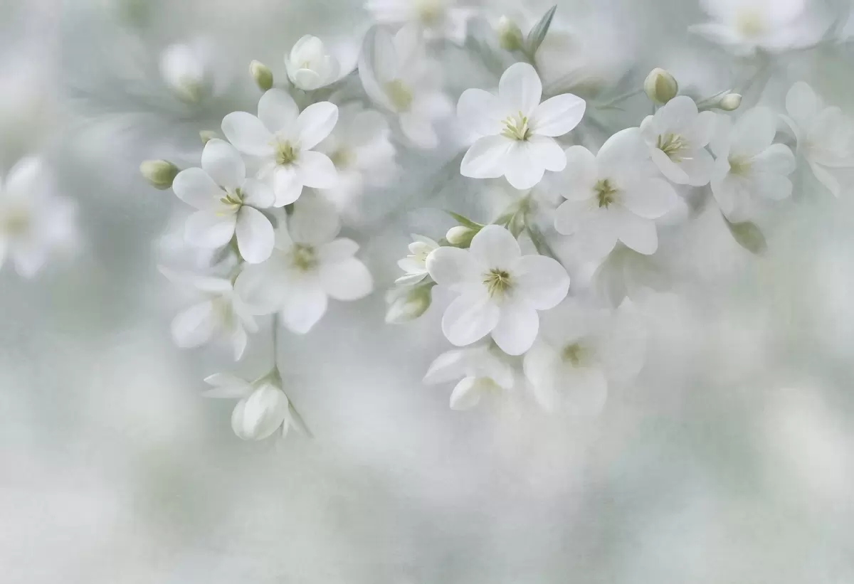 Fototapety Jemné biele kvety s výraznou štruktúrou, jemne rozmazané v pozadí Nr. w09759