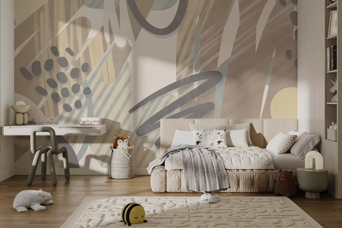 Fototapety Abstraktný textúrovaný vzor s organickými tvarmi, čmáranicami a bodkami v jemných pastelových farbách Nr. w09774