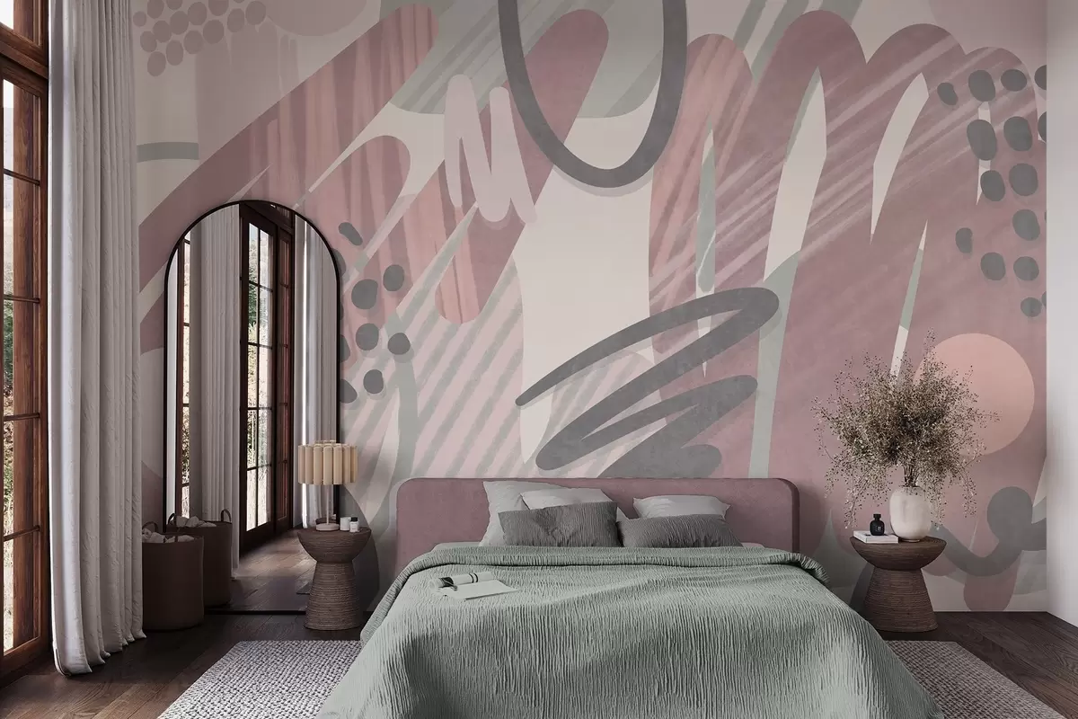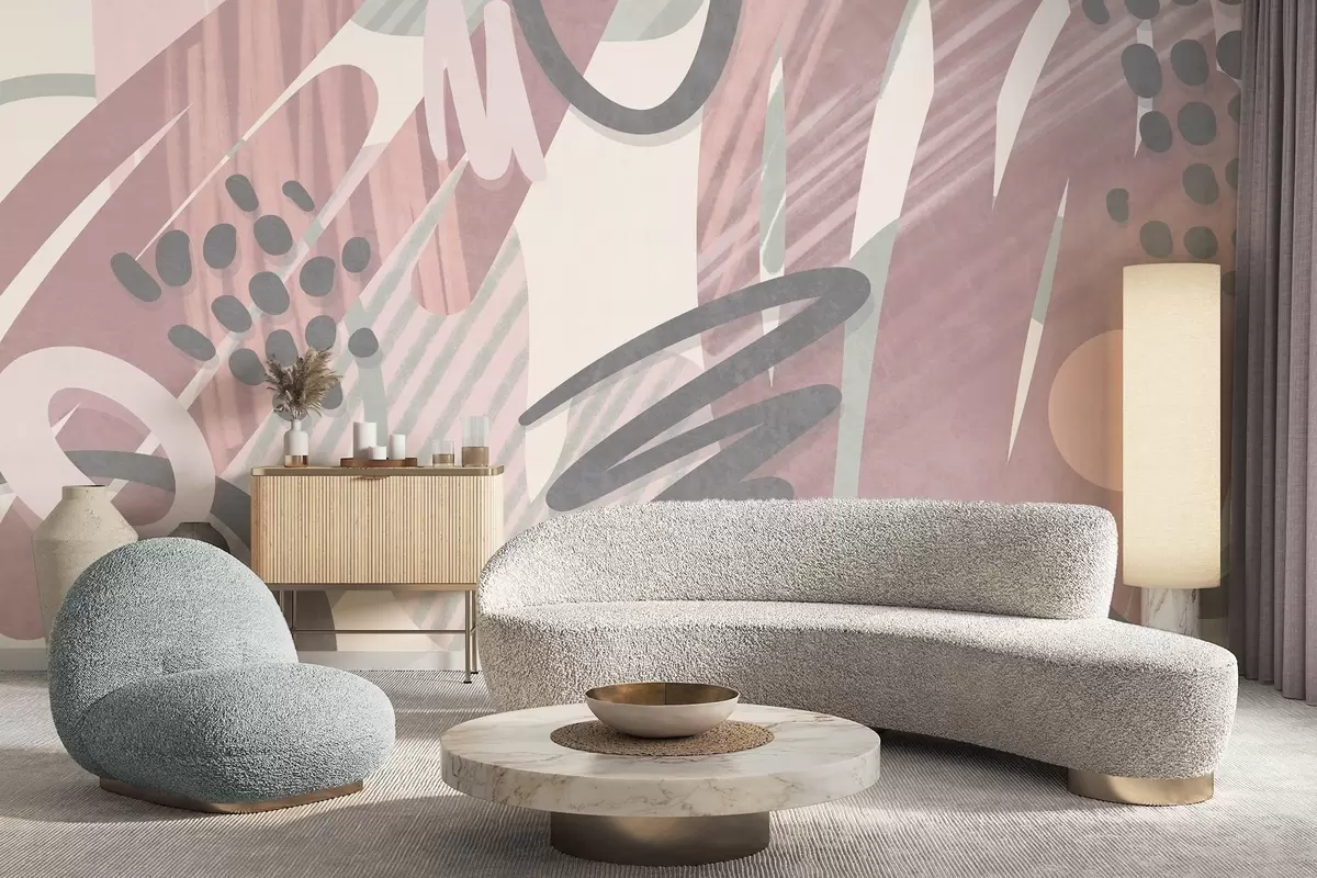 Fototapety Abstraktný textúrovaný vzor s organickými tvarmi, čmáranicami a bodkami v jemných pastelových farbách Nr. w09774v1