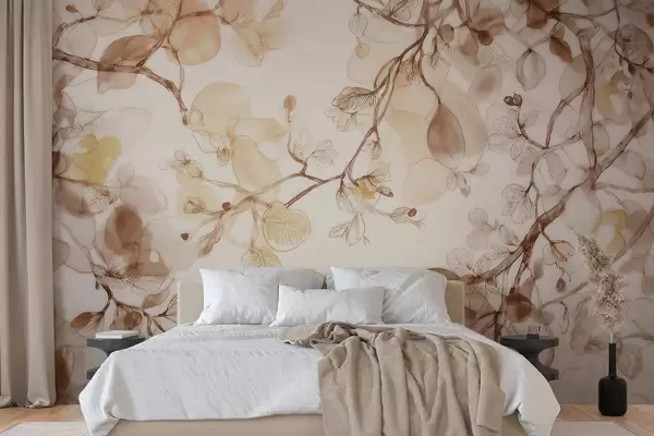 Fototapety Vzdušné visiace konáre v béžových odtieňoch v akvarelovom štýle Nr. w09795